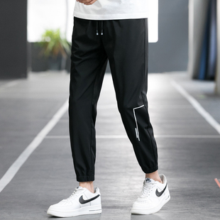 新款夏季冰丝阔腿裤女学生韩版宽松高腰垂感九分直筒开叉休闲长裤