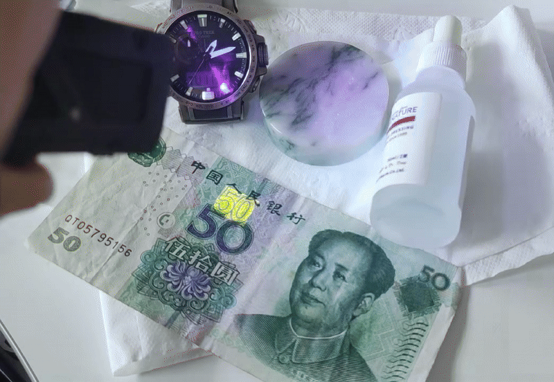 365nm波长的紫外光,可以很好地显影,可以帮助人看到可见光下看不到的情况,包括验钞、查看胶体痕迹、检查公共区域的卫生情况、检验珠宝、追踪细微痕迹等。