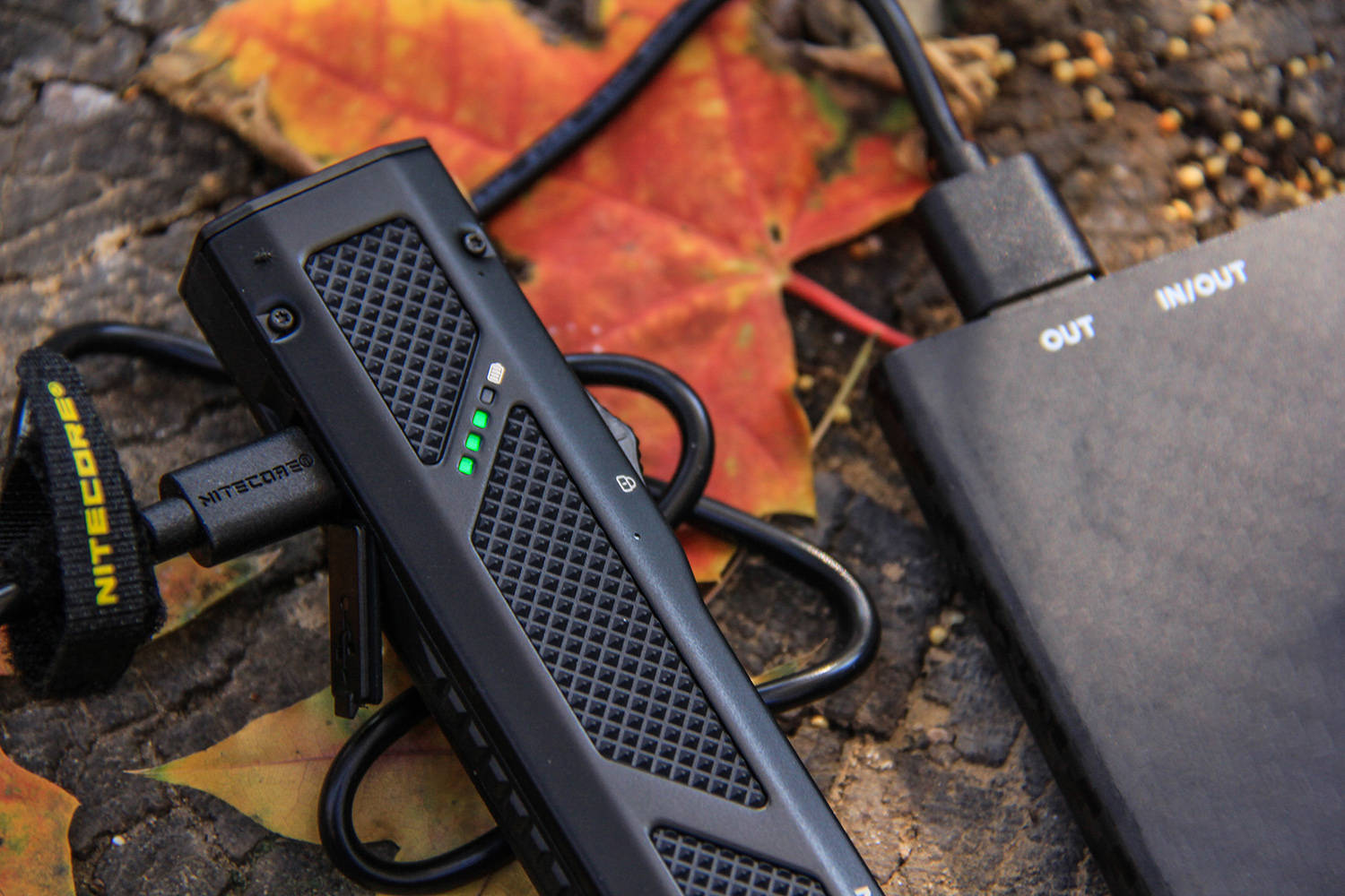 插上电源,就可以随时随地给EDC17充电,充电中对应的电量指示灯闪烁,大约1个小时左右,4颗绿色指示灯全亮,就表示完全充满,充电速度比较快。