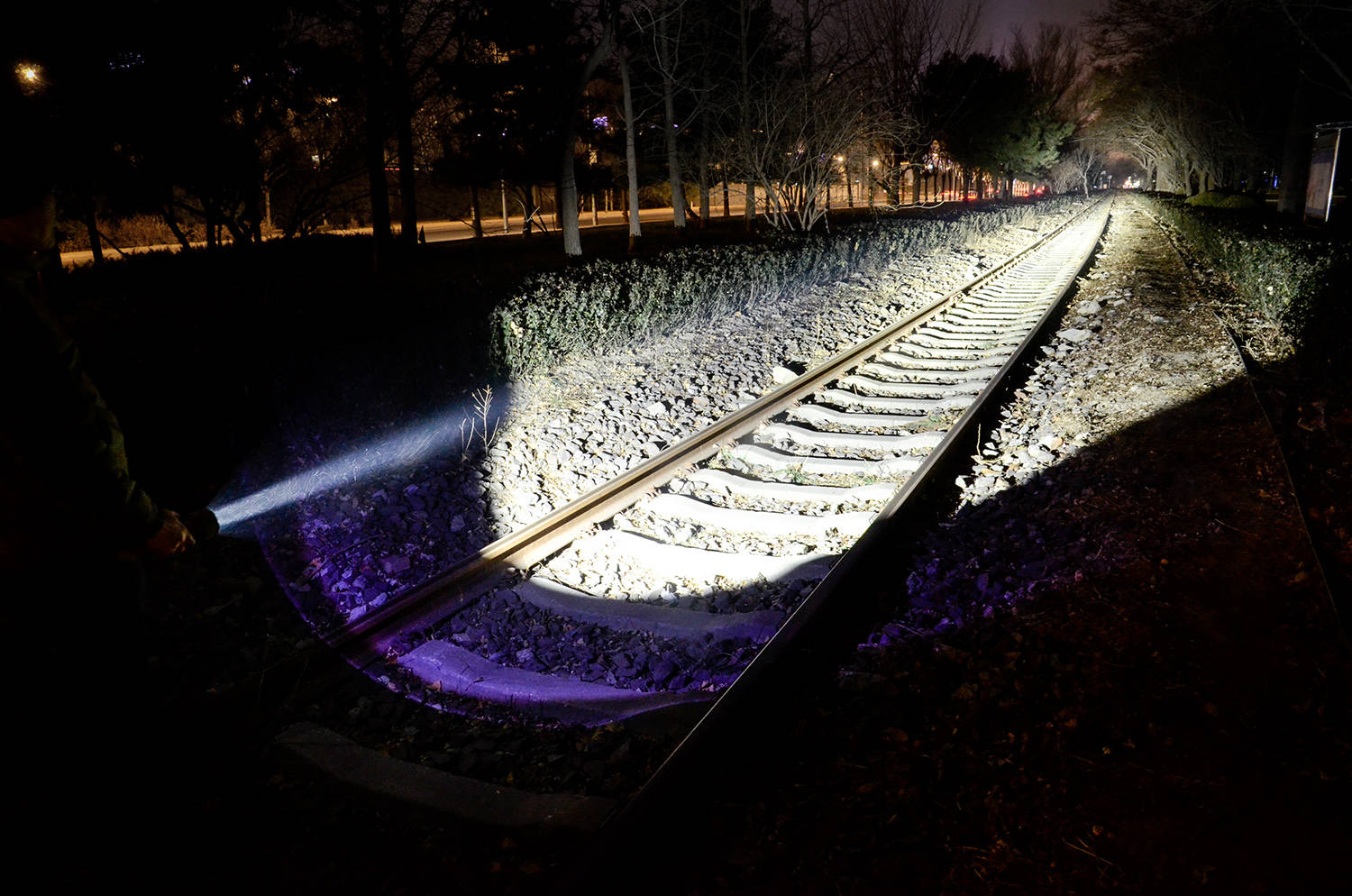最大光通量5600lm,中心光强达到56.25万坎德拉,有效照明距离能够达到1500米,这在LED手电中确实是目前的佼佼者,光线指向清晰精准,7~800米远的铁轨尽头全被照亮,中心亮度集中,带来明显的可视效果。