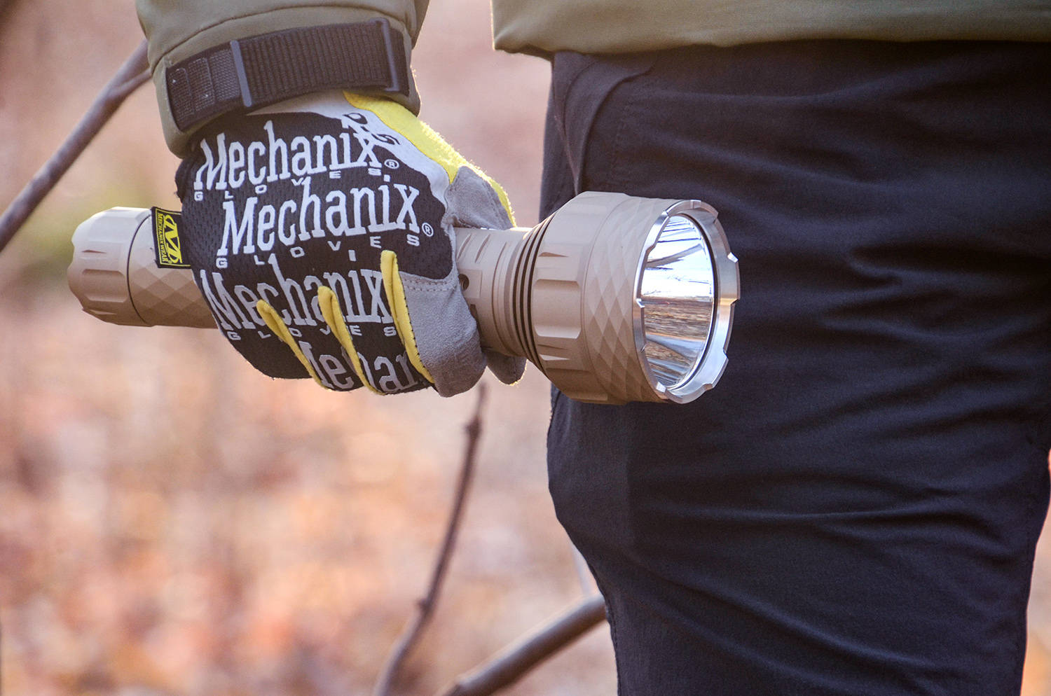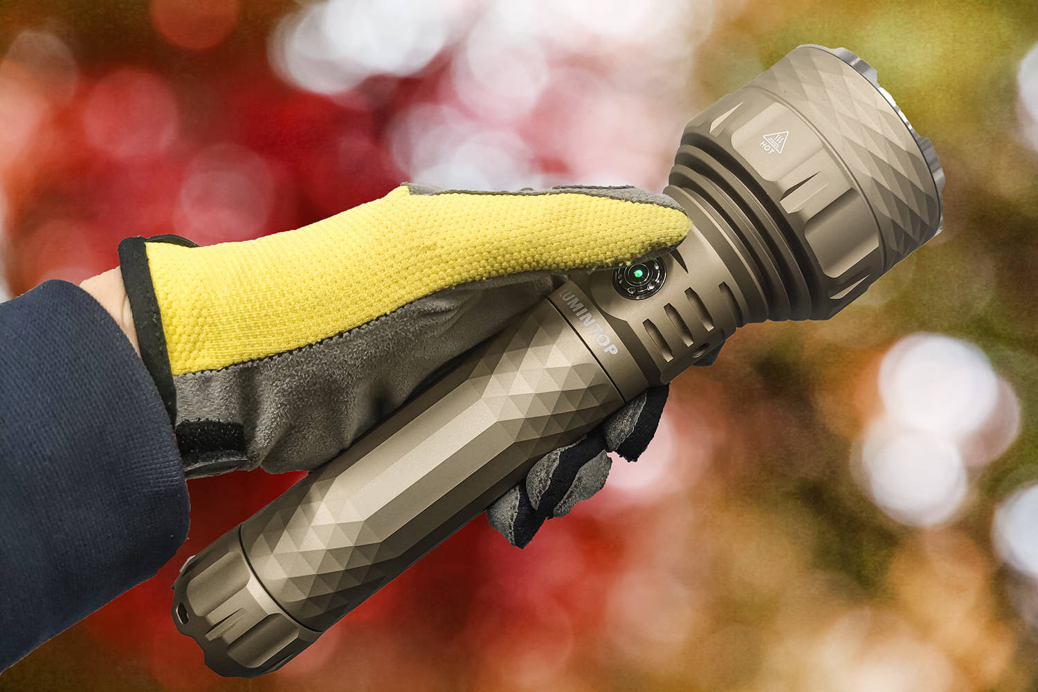 粗壮的筒身,带来扎实的抓握手感;大面积的开关,带来清晰的按动手感,PK90的重心偏向灯头,手握的位置便于掌握好平衡,拇指可以方便放在开关的位置,戴着手套也有清晰的按动反馈,单手可以灵活操作。