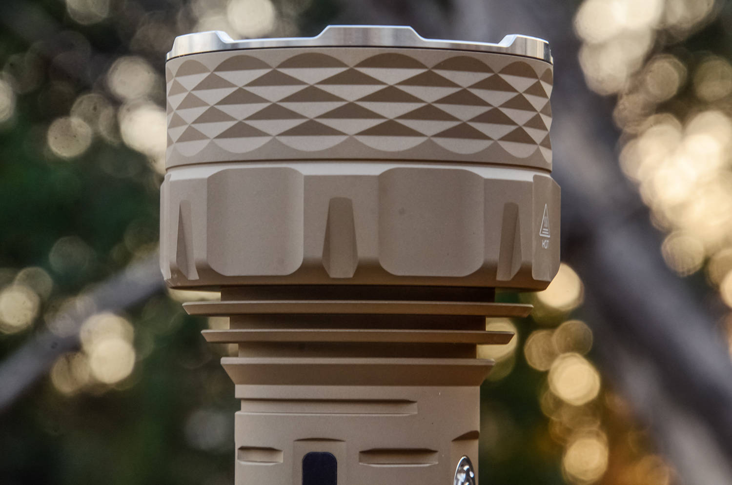 PK90的重量约为843克,钻石切割工艺不仅让 PK90 在外观上脱颖而出,还在一定程度上增加了筒身的摩擦力,灯颈的变径刚好作为抓握的止挡点,使得握持时更加稳固,不易滑落。