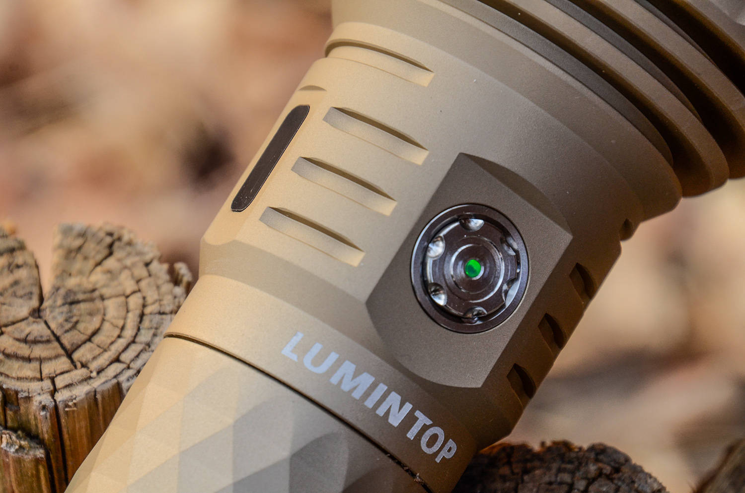开关的圆心位置,还有一颗绿色的位置提示灯,在黑暗中比较醒目,可以提示PK90的位置,如果不喜欢,可以快速连续按动7下开关,就能关闭/打开位置灯。
