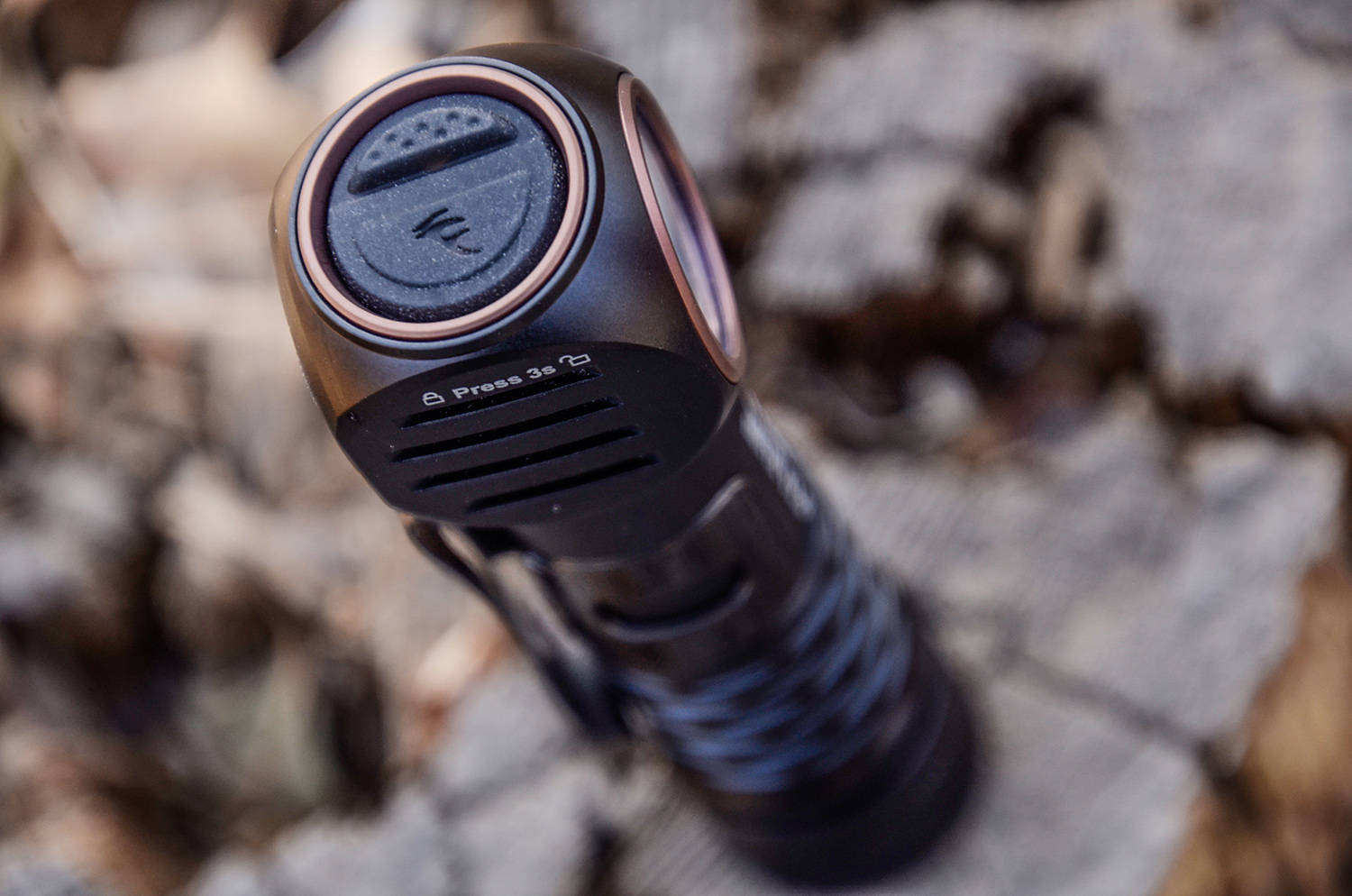 HM61R V3.0 设计了逻辑清晰、盲操便捷、容错率高的操作体系,灯顶设计了两枚开关,大的更扁平的是主开关,小的略凸出的是副开关也是模式开关,即便在复杂的户外环境中,也能实现无需看见、精准控光。