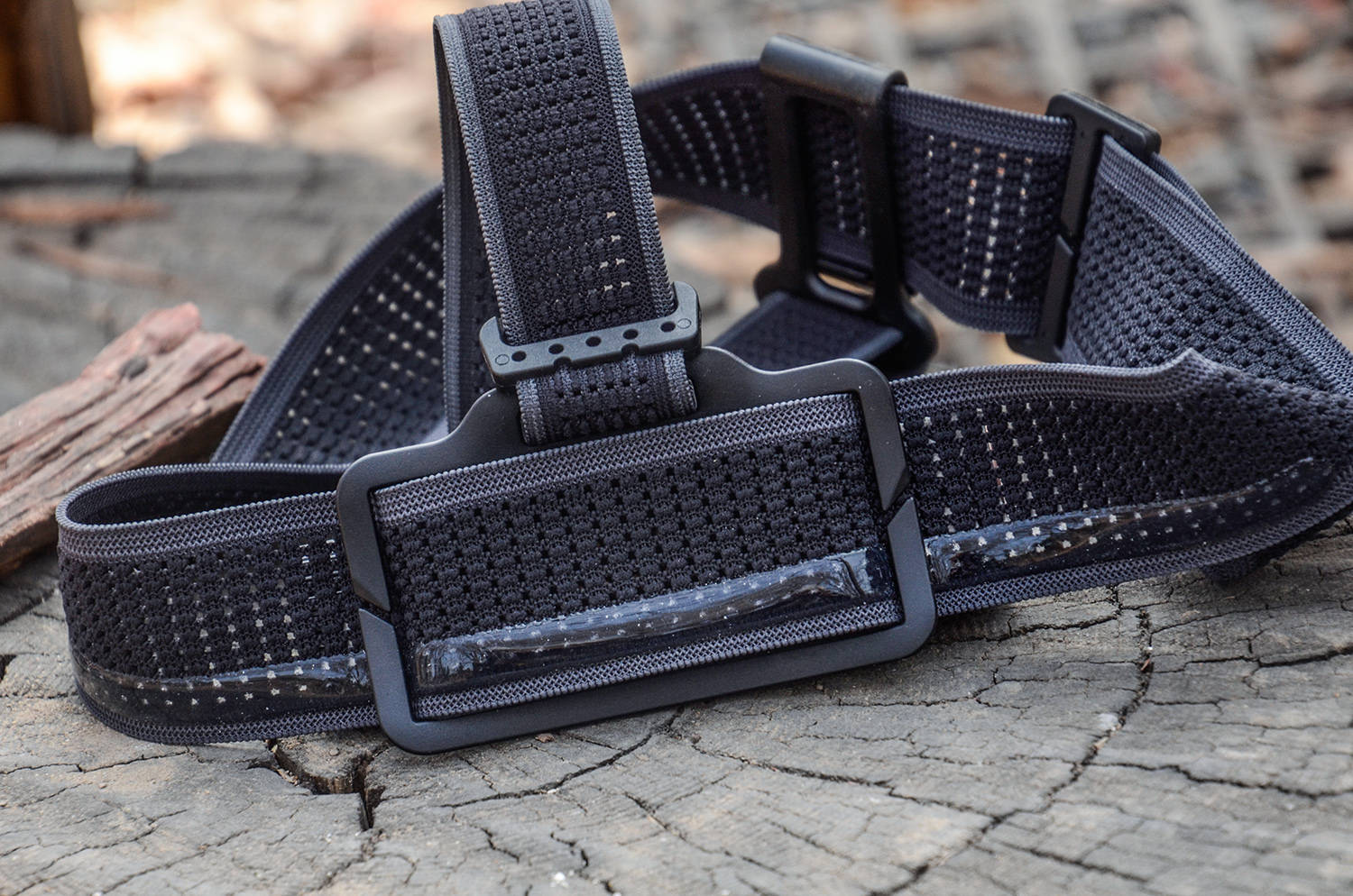 头带的材质选择兼顾了弹性、透气性与耐磨性,采用高弹尼龙织带作为基底,内侧复合了网眼透气面料,在保持柔软、贴合、舒适的前提下,通风透气、避免闷汗,即便头部出汗,网眼面料也能快速疏导扩散汗液,快速蒸发。