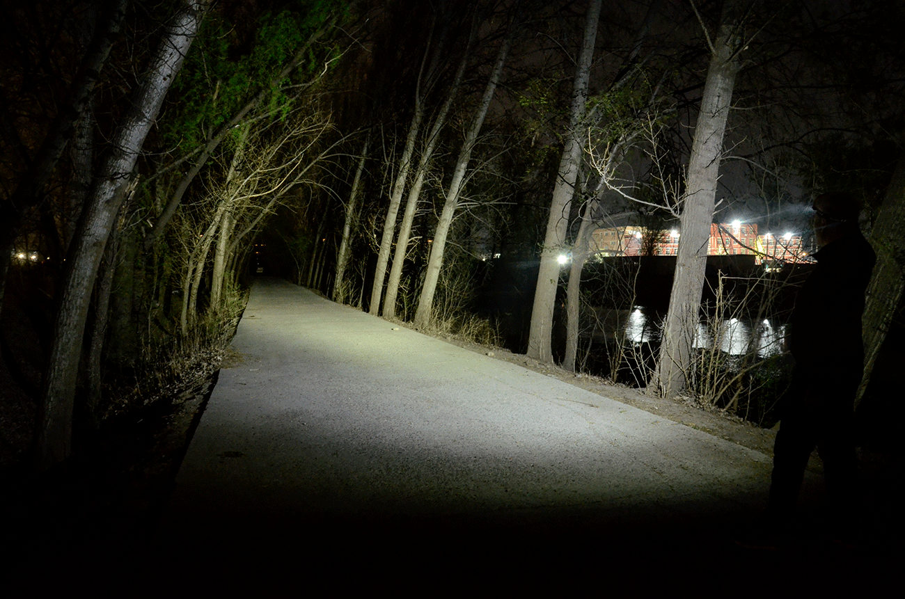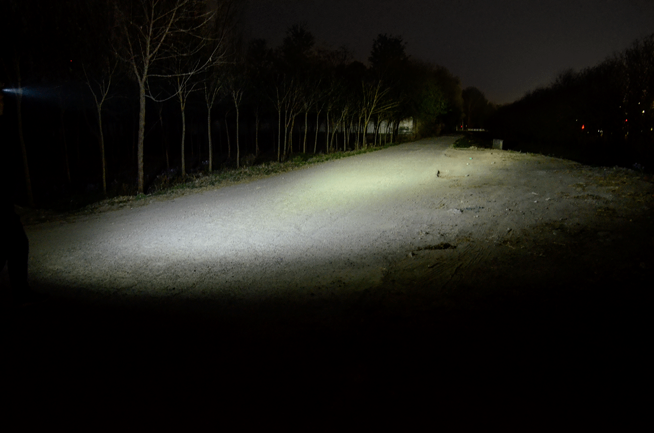 HM53R 的最大光通量为1200流明,整体呈现远泛兼顾的照明效果,中心光柱以7°左右发散,能够明显照亮正前方物体,泛光区范围大,形成对环境的补光,整体亮度柔和、反光不觉得刺眼。
