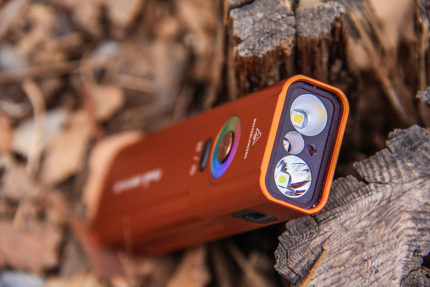 E06R Pro RG的主灯由LUMINUSS提供,一颗为SST20、另一颗是SFT25。其中,SFT25 为小面积圆形LED,负责聚光,光束集中穿透力强,适配远距搜索;SST20面积稍大带有果冻,主打泛光,光线柔和均匀,近距照明更舒适。